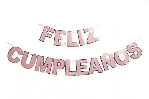 Banderin Feliz Cumpleaños Letras Rosa y Dorado.